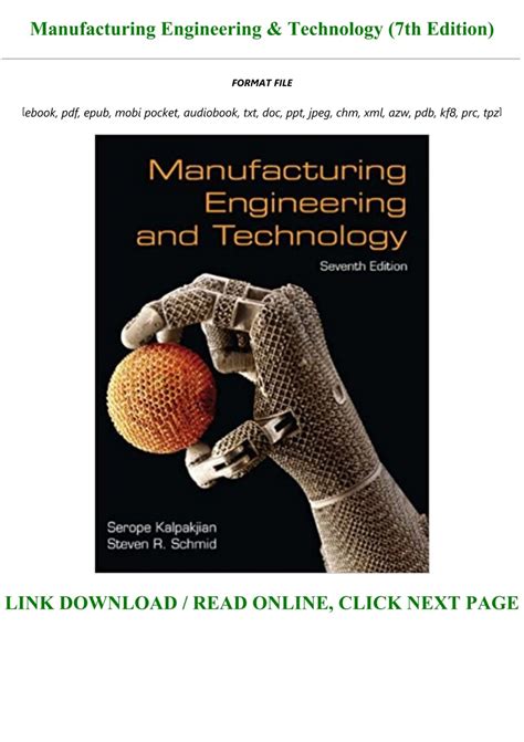 Read manufacturing engineering technology 7th edition Ebook Epub online is a convenient and frugal way to read manufacturing engineering technology 7th edition Ebook you love right from the comfort of your own home. Yes, there sites where you can get Epub "for free" but the ones listed below are clean from viruses and completely legal to use.